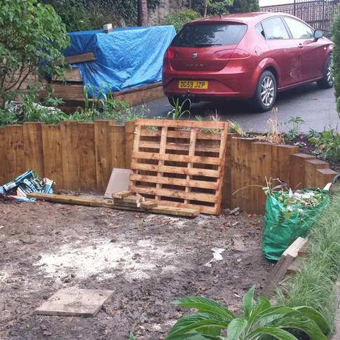 In the mean time we built a curved retaining wall for the drive out of sleepers. The area in front of the studio will be a seating / chilling area with plants all around.